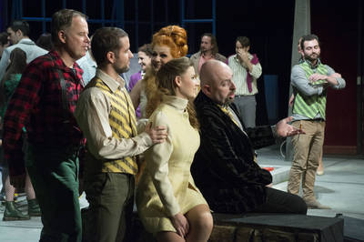 Ezen kívül még egy szempontunk volt: a történet rendre filozófiai mélységű kérdésekbe botlik, amik az egyes stációk konfliktusaiban bújnak meg. Ezek a cselekményhez hasonlóan „az élet nagy dolgait" igyekeznek felölelni, viszont nem rajzolódnak ki világosan. A színpadkép szándékaink szerint segít majd ebben. A díszlet központi eleme egy hatalmas katalógus, ami a benne és körülötte megjelenő helyszíneket képes abban az értelmezési tartományban definiálni, amit a történet elsődleges rétegei alatt sejthető filozófiai aspektusok megkívánnak. Tele lesz izgatott párokkal, éljenző emberekkel, a szakállas nő kincsével, élőkkel és halottakkal – mindannyiunkkal.”